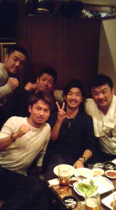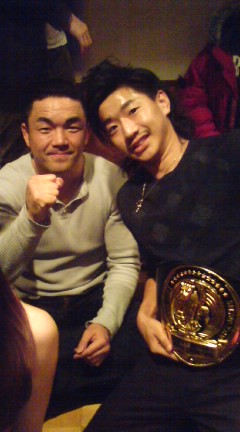 同じく試合を見に来ていた大先輩の吉田秀彦さんと合流して、そして、そのあとは見事にチャンピオンを防衛した松本哉朗選手や、メインで見事にKO勝ちした石井宏樹選手と合流☆